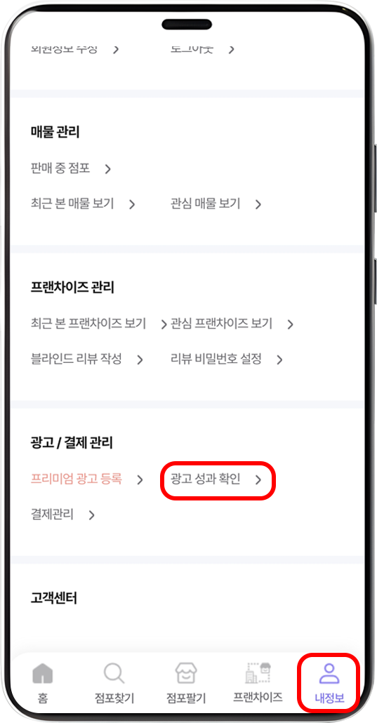 매물광고 광고 홍보 프리미엄광고 광고성과 고객센터 결제관리 환불 광고승인 매물홍보 점포팔기광고